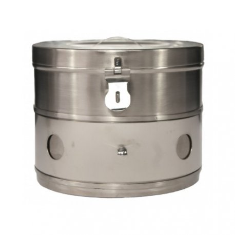 De 1 litro fabricada en lámina de acero inoxidable calibre 22. Con tapa de 11 cm de diámetro por 13 cm de altura.