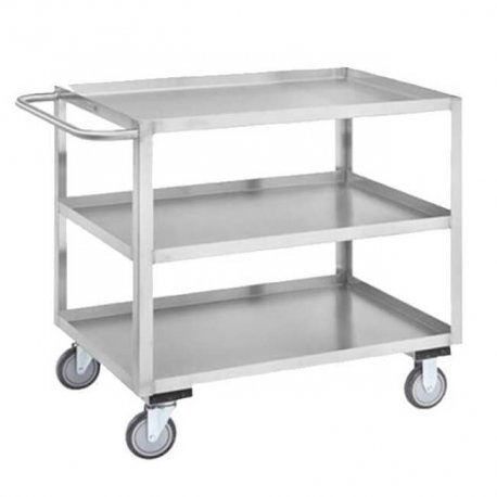 Tres charolas de 40 mm de altura y cuatro escuadras postes de 40 mm fabricados completamente de acero inoxidable cal 16, soldados por medio de soldadura de argón de alta resistencia, acabado pulido.