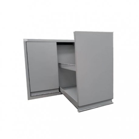 Dos cajones verticales con corredera de extensión a 65 cm, tres divisiones para colocación de frascos con tope anti caída.
